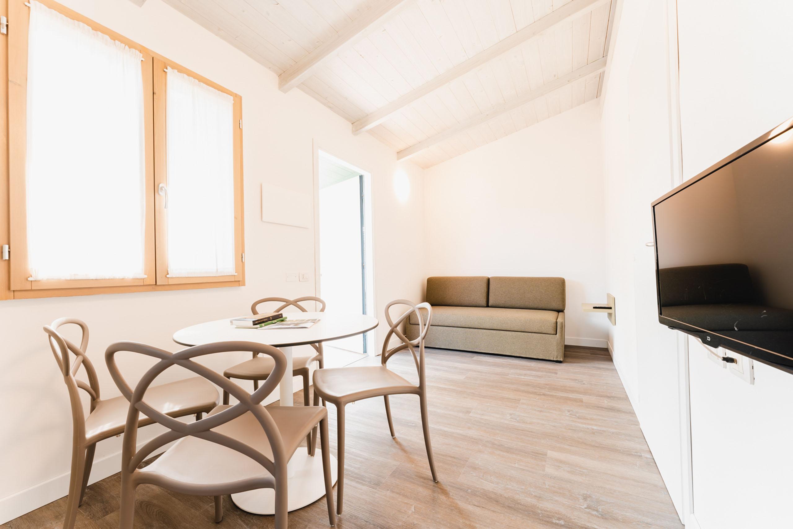 Benvenuti a casa! Aprite la porta in legno blu del vostro nuovo comodo chalet trilocale e iniziate a guardarvi intorno: la cucina è attrezzata e ha un angolo soggiorno moderno e funzionale, la camera matrimoniale è accogliente e il bagno offre tutto il necessario. Lo chalet dispone di cassaforte, aria condizionata, TV digitale e gli animali sono ammessi. All’esterno troverete una veranda privata, il posto ideale per rilassarsi nel verde o per mangiare in compagnia!