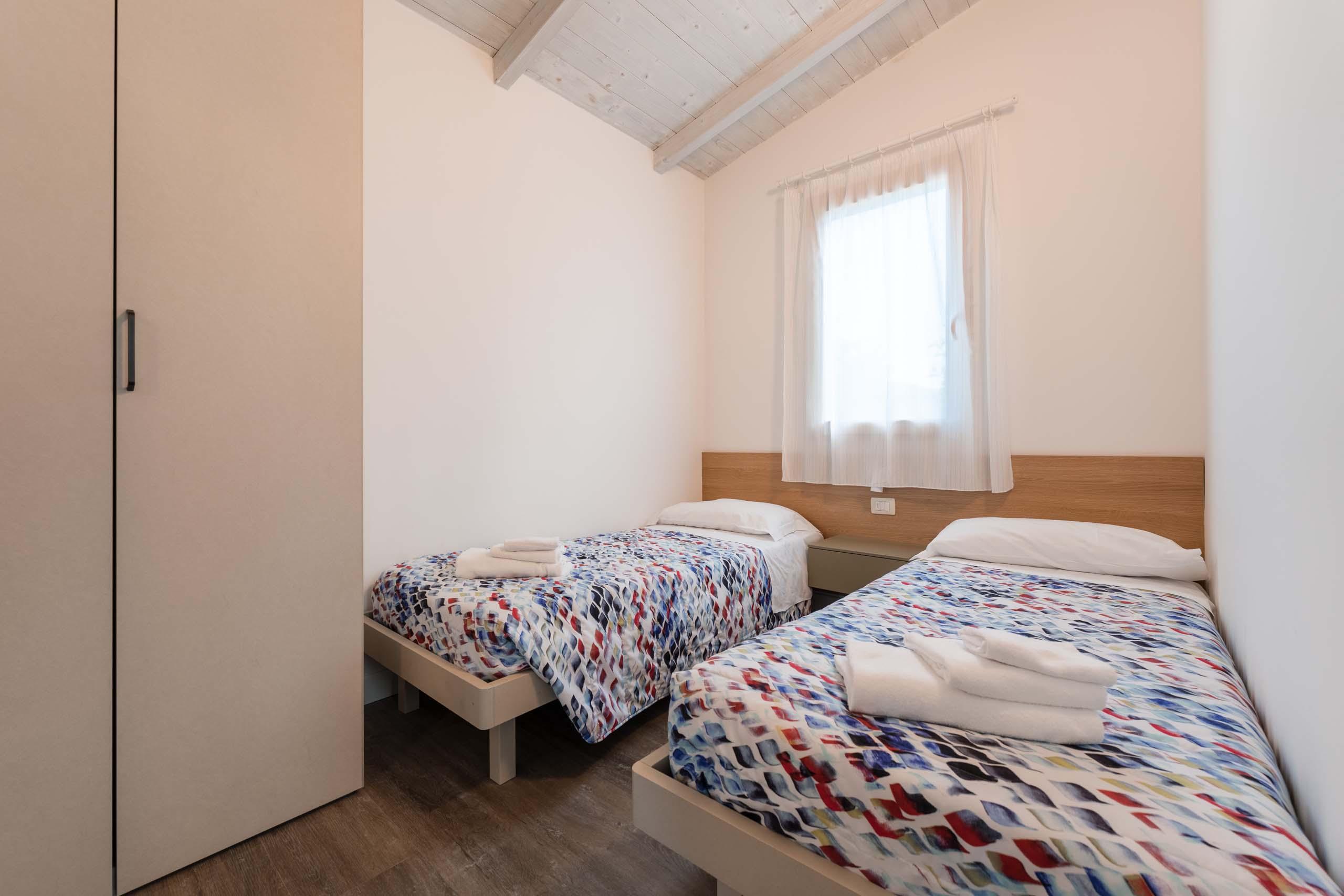 Benvenuti a casa! Aprite la porta in legno blu del vostro chalet e iniziate a guardarvi intorno: la zona cucina/soggiorno con divano o letto sommier singolo è moderna e funzionale, la camera matrimoniale e doppia sono accoglienti, e il bagno dispone di tutto il necessario. Fate un tour esplorativo del vostro nuovo rifugio in riva al mare e poi uscite a rilassarvi nella vostra veranda privata. Intimità, privacy e relax sono le costanti del Golden Chalet!