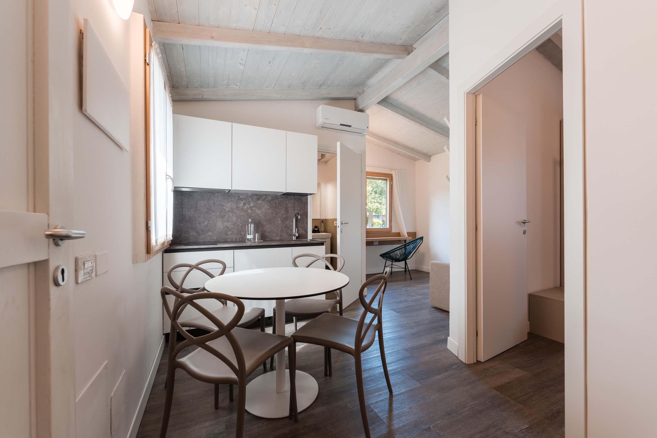 - Zona cucina/soggiorno con divano letto o letto sommier singolo