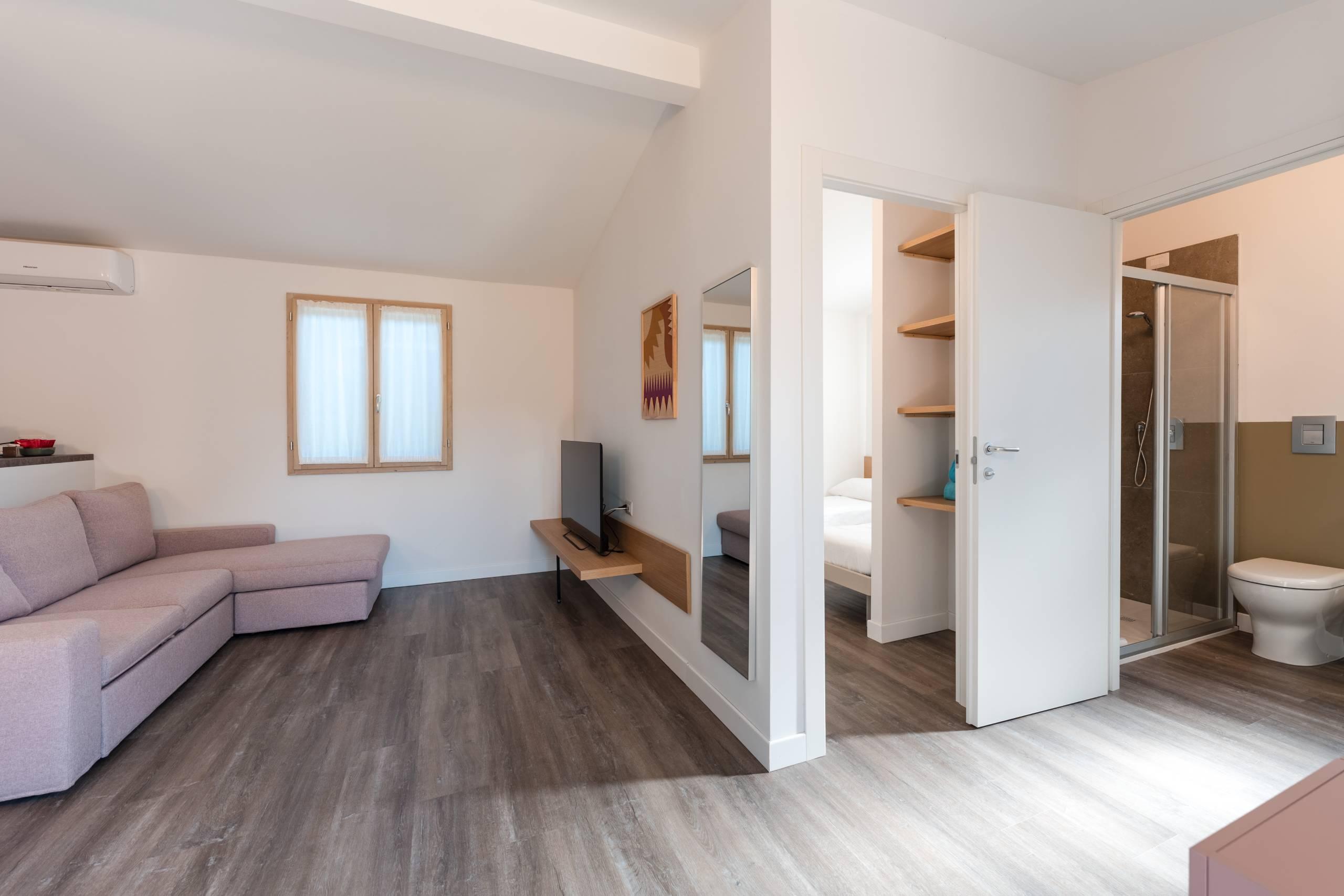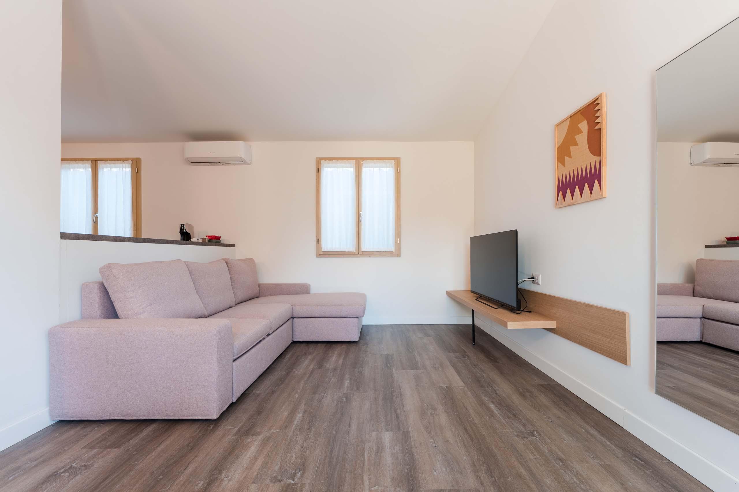 - Cucina attrezzata con area soggiorno e divano letto matrimoniale